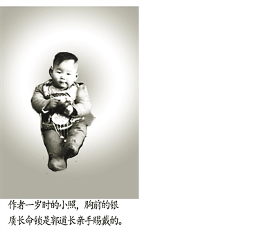 作者一岁时的小照,胸前的银质长命锁是吕祖庙郭道长亲手赐戴的。