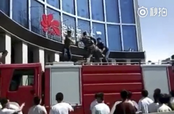 陕西一工人触电身亡酿冲突 多人在消防车顶打斗(图)