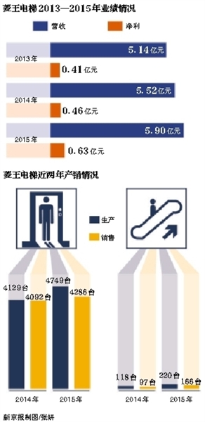 截至2015年末,菱王电梯资产总额达到7.5亿元。经营方面,2013年至2015年,其营业收入均保持在5亿元上方,且过去三年的年复合增长率为7.21%。同期,公司净利润分别为4086万元、4564万元和6280万元。