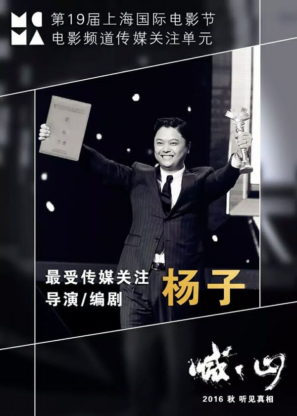 杨子不到五分钟,两次上台领取份量非常重的最受传媒关注编剧、最受传媒关注导演两项大奖,成为当晚焦点人物。他坦言这是“从影以来第一次获得这样的荣誉,心里非常激动,感谢海润刘总,威秀艾总及我的制片人太太韩肯”。同时对原著作者葛水平女士在自己没有投资、无法支付改编授权费时采用口头授权的方式助力作品诞生、参展表达了感激。