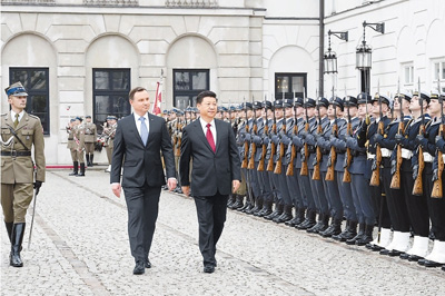 6月20日,国家主席习近平出席波兰总统杜达在华沙总统府举行的隆重欢迎仪式。