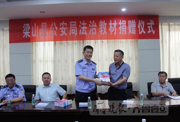 6月22日,梁山县公安局向梁山县一中捐赠《中学生法治教育读本》仪式在县一中会议室隆重举行。