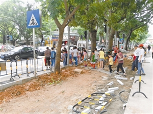 对此,东部交通运输局回复本报称,将在出行高峰期停工避让,方便市民及学生通过,同时将尽快完成人行道铺装。