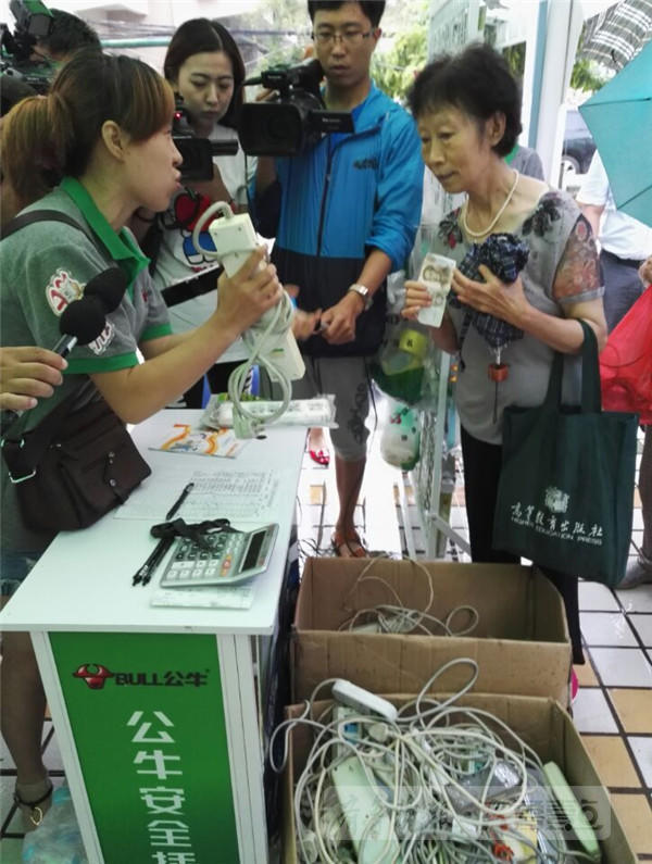 您是否留意过家中的电气插排是否合格、会不会存在隐患?2016年6月23日下午,省城明湖小区,由历下区政府牵头、历下公安消防大队联合公牛插座向辖区居民开展了插排以旧换新活动,以消除隐患。据历下公安消防大队徐玉涛大队长介绍,从2015年至今,一年半的时间,历下区共发生火警86起,其中电气火灾56起。而这些电气火灾中,又有半数是因插排问题所致。