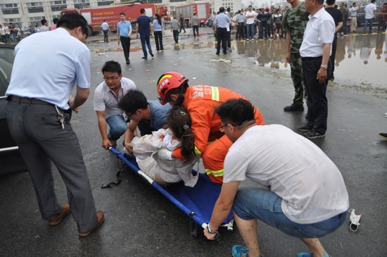 6月23日,江苏盐城消防支队官兵在阜宁县开发区抢救伤者。严肖/摄(新华社发)
