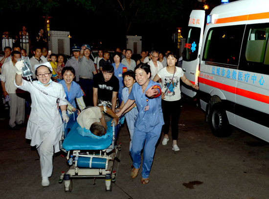 6月23日,盐城市第一人民医院医护人员在抢救伤员。吴江/摄(新华社发)