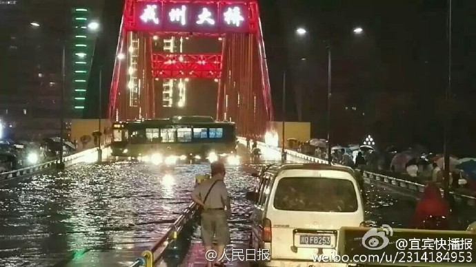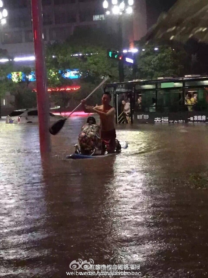 @人民日报:【四川宜宾暴雨:“划船哥”救了一公交车的人】23日晚,四川宜宾下起暴雨,积水阻碍交通,不少人被困。一位“划船哥”,独自在水中划船,将一辆被困
