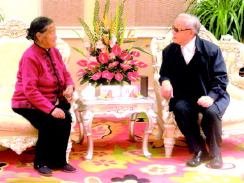 2010年10月4日,原中共中央政治局委员、中央军委副主席、国防部长迟浩田上将与伊淑英亲切交谈。