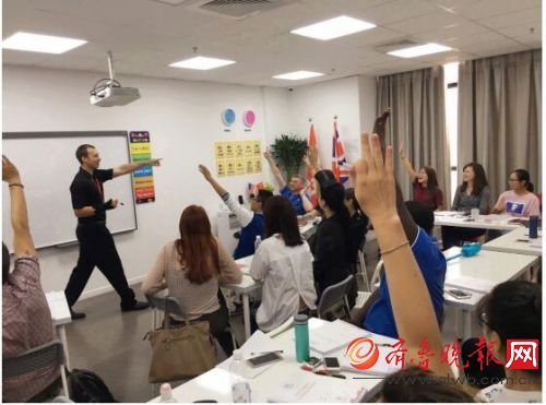 齐鲁晚报6月27日讯 爱贝国际少儿英语总部第48期新师培训已经开始啦,本次有31位中外教老师从爱贝全国各中心前来参加培训。大家每天都非常认真的听课、做笔记;在Kyle老师的提问环节,老师们积极举手,踊跃参与。