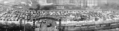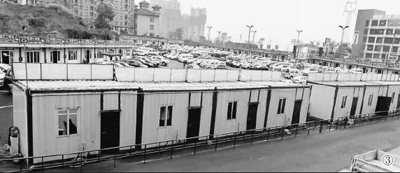 我们是四川省泸州市龙马潭区迎宾大道香格里拉小区住户。2015年7月,龙马潭新申二手车市场管理有限公司老板在我们小区前面22亩工业用地性质的空坝上,违规建了一个二手车交易市场(见图①),可停放600多辆车。该市场在没取得商务部门许可、没报城建审批且未经消防部门验收的情况下,于2015年10月初在国庆假期几天内匆忙建起了88间近2000平方米的易燃彩钢泡沫板房办公室(见图②、图③)后,就擅自开展经营活动,而板房里面的经营者为图方便乱拉电线,甚至在板房里面烧水做饭取暖。