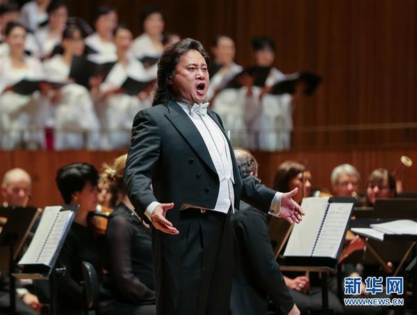 6月27日,中国男高音歌唱家魏松在澳大利亚悉尼歌剧院举行的慈善音乐会上演唱。中国三大男高音歌唱家戴玉强、莫华伦和魏松27日晚在澳大利亚悉尼歌剧院举行慈善音乐会,向澳大利亚观众奉上了世界水平的歌剧表演,也为在场的众多华侨华人带来乡音。新华社发(朱宏业摄)