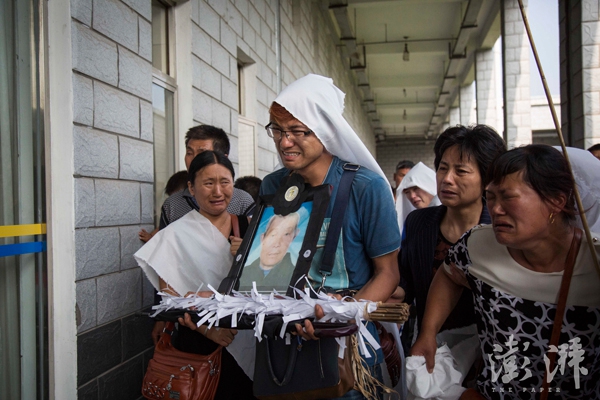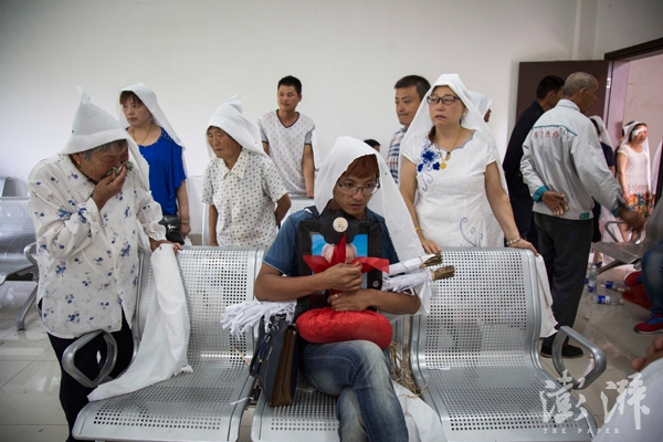 2016年6月26日,殡仪馆内,王德胜捧着父亲的遗像走在最前面,家里的亲人早已哭成一片。