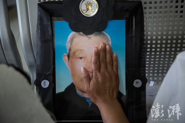6月26日,王德胜的大姐抚摸着父亲的遗像。
