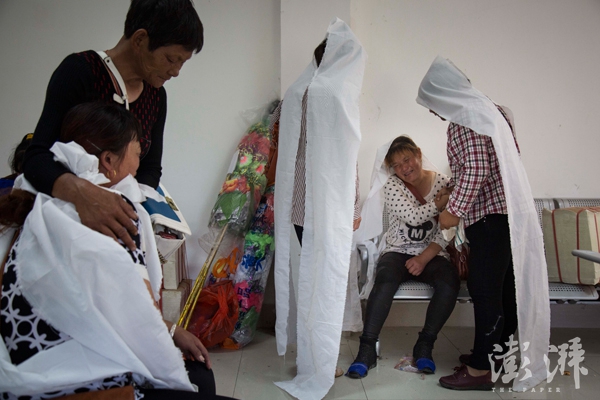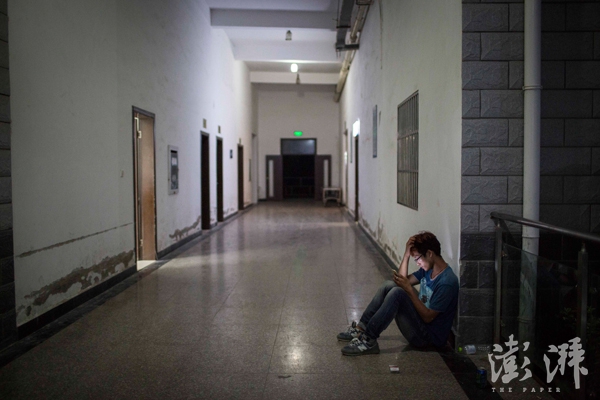 2016年6月25日,王德胜守在殡仪馆的走廊上。