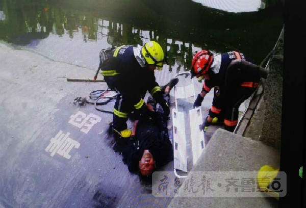 28日上午10点40分左右,泰安上河桥南侧,一名男子坐在渿河岸边休息,一 不留心,掉进河水中。幸好附近有环卫工划船,清理河中垃圾。听到求救后,到 场施救。随后,消防官兵到场,将男子抬至救护车上。