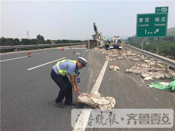 情报站|济青南线大货侧翻,一车兔兔散落高速遭了殃