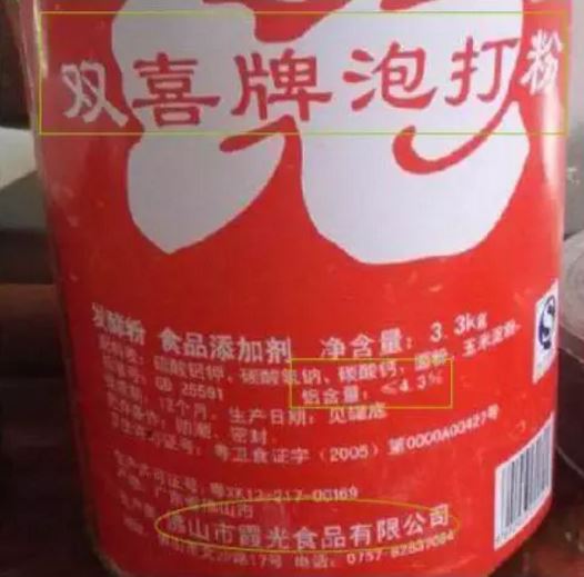 家长代表在厨房发现一罐双喜牌泡打粉。