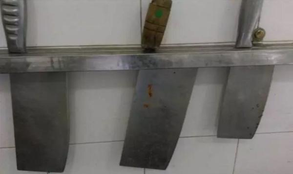 6月24日,有家长称,在厨房发现挂着的三把刀中,一把有锈斑,一把上面爬着蚂蚁。