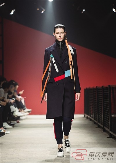 色彩方面多以强弱对比的组合方式出现,如基础的黑色与藏青色形成近似色弱对比,加入粉紫与藏青色形成同色调的冷暖反差,驼色与红黄蓝三原色的碰撞,这些都是大胆而新鲜的尝试。![]()