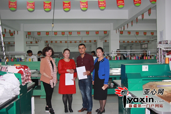 在前两批工作组的帮助下,本村18名妇女联合成立了刺绣合作社。但是由于产品单一、销路不畅,合作社一直处于亏损状态。“乔丽盼”多次考察走访了附近的刺绣企业,与合作社的姐妹们商议提出改变产品路线,与市场销售有保证的成熟企业合作,以规避自身短板的发展思路,并且5次往返阿图什,终于促成了刺绣合作社与克州库吐鲁克公司的合作,签订了委托加工协议和设备购置协议。