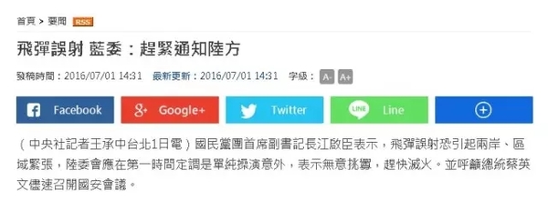 而据“中时电子报”,绿营有“立委”则用“担忧与惊恐”形容了她这场“劫后余生”的心情... 连前面提到的那位住在军港边的大叔,在得知这只是误射后,也长舒了一口气,但仍然悻悻地表示这事太敏感了,如果真的过了中线,射到大陆那边,后果不堪设想...!