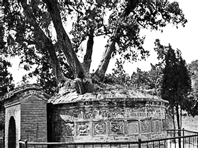 司马迁墓地分出五个枝杈的古柏