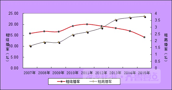 粗结婚率(全年结婚人数占全省总人口数的比重)为14.2‰,粗结婚率自2007年以来人数最低,2015年25-29岁办理结婚登记占结婚总人口比重最多,占50.9%,比2014年提高4.5个百分点。