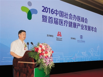 北大国际医院院长陈仲强在2016中国社会办医峰会暨首届医疗健康产业发展年会上发言。