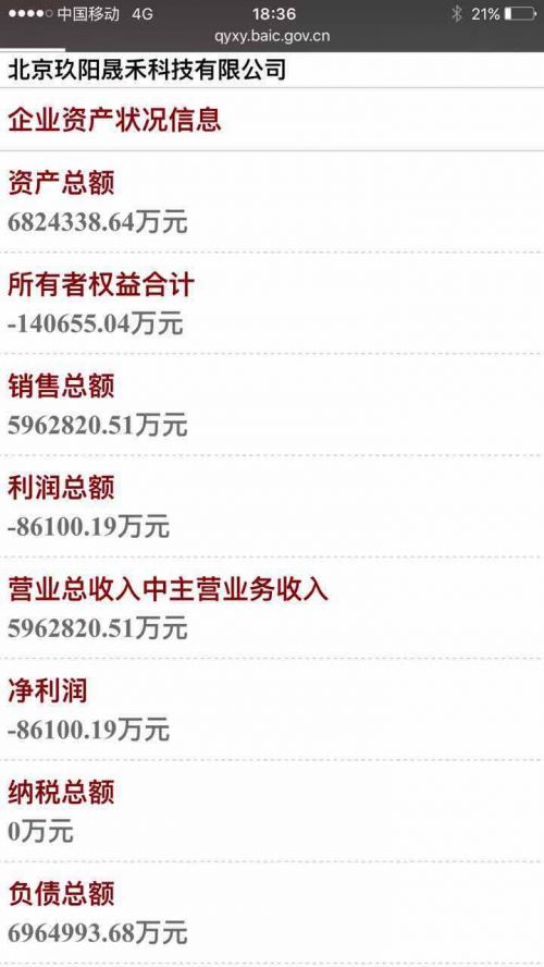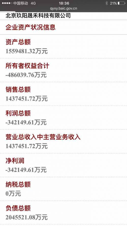 而北京市工商局在年报披露一栏写明:“企业公示信息由该企业提供,企业对其公示信息的真实性、合法性负责”。对于玖阳晟禾这家注册资本仅10万元的公司,因何出现百亿级财务数据,目前仍有待公司和工商局7月5日给出有说服力的证据。