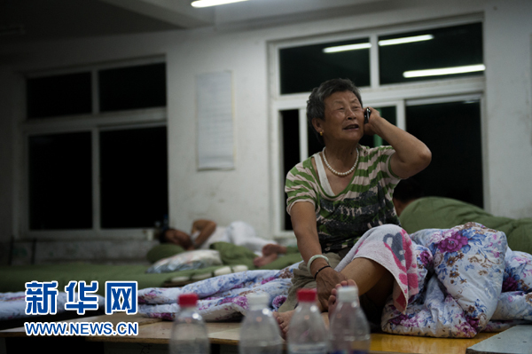 7月4日晚,在安徽省芜湖市南陵县春谷中学安置点,方桂香给外孙女打电话报平安。 6月18日以来的强降雨,已造成安徽合肥、滁州、六安、马鞍山、芜湖、宣城、铜陵、池州、安庆、黄山市10市59个县(市、区)不同程度受灾。7月4日,安徽省芜湖市南陵县300多名受灾群众被转移到春谷中学安置点。新华社记者 孟鼎博 摄