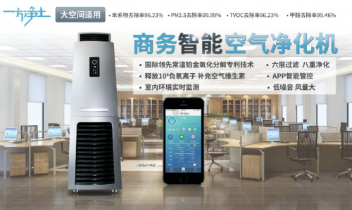 为了攻破环境净化领域的瓶颈,将好的技术实实在在的运用到产品上,最终张教授将“常温铂金氧化分解”技术转化成科研成果与北京易净优智环境科技有限公司达成“产学研”一体化合作,研发出专为环境复杂的商务大空间设计的“一方净土”商务智能空气净化机,它是集室内环境实时监测、数据可视化、云存储、超级净化于一体,手机APP智能管控;采用“常温铂金氧化”核心为专利技术,六层过滤、八重净化,PM2.5去除率达到99.99%、甲醛去除率达到99.46%、苯去除率达99.39%、TVOC去除率达96.23等室内污染物,且净化效果实时可见!