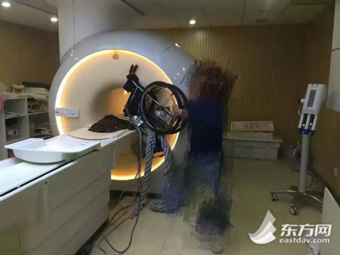 据了解,事发时,患者已完成检查,患者家属因心急将其从检查室内接出而把轮椅推进了检查室。由于核磁共振仪当时处于待机状态,仍具磁性,因此金属制轮椅被迅速被吸附到仪器上。
