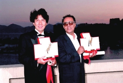 1997年,第50届戛纳电影节金棕榈大奖下了双黄蛋:阿巴斯(右)《樱桃的滋味》和今村昌平(左)《鳗鱼》一起领奖。