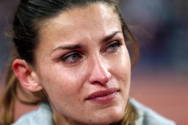 图为2012年8月11日,俄罗斯选手奇切洛娃在2012年伦敦奥运会田径女子跳高决赛中夺冠后激动落泪。作为女子跳高的奥运卫冕冠军,奇切洛娃因在北京奥运会期间留存的兴奋剂检测样品复检不过关而被国际田联禁赛。 新华社发