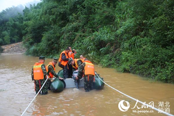 人民网咸宁7月6日电 7月5日凌晨2时许,咸宁市通城县消防大队接到县政府相关部门通知:通城县四庄乡青草岭水库泄洪导致下游发生了山体滑坡,形成堰塞湖,严重威胁下游数百名群众,亟需救援。接到警情后,通城县消防大队大队长闵强亲自率领5名官兵,1辆皮卡车、1只皮划艇赶赴现场。