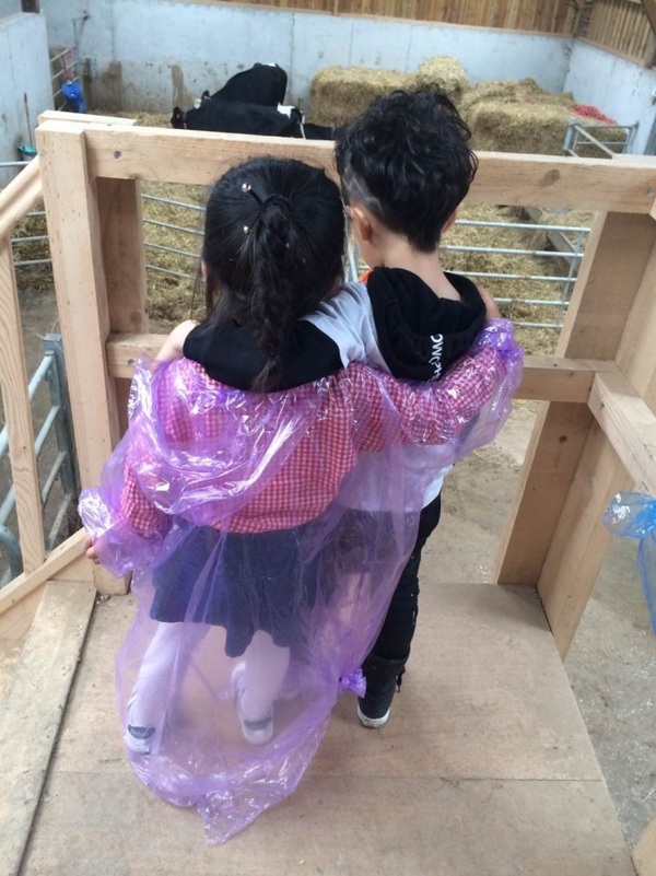 看,合生元宝宝们正充满好奇地观察着这些“大家伙们”,他们一定在想,哦,原来我平常每天喝的奶粉,就是这些牛牛们生产出来的啊!