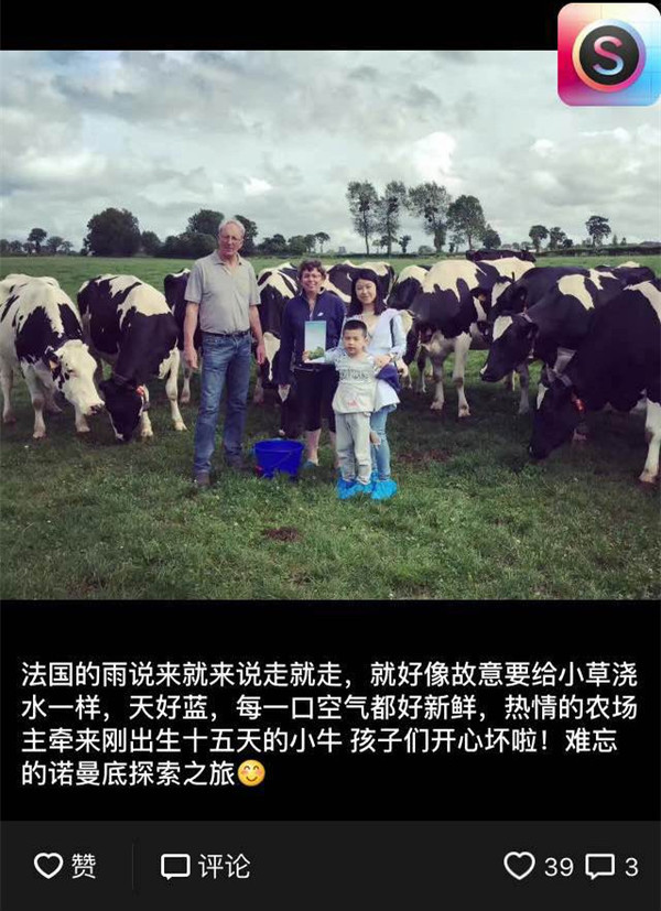 在这一天,合生元奶粉的工作人员还给妈妈和宝宝们准备了一份珍贵的惊喜!此次亲临合生元位于诺曼底Gaec De La Pecviniere牧场的所有宝宝们,不仅可以领养一头自己专属的诺曼底奶牛,还会获得由牧场主Mr.Gousset和太太亲自颁发的“诺曼底奶牛领养证书”!从这一刻开始,宝宝们就正式成为合生元专属奶牛的小主人了,还可以享受来自北纬49°法国诺曼底黄金牧场里自己的奶牛生产的美味、营养的牛奶。