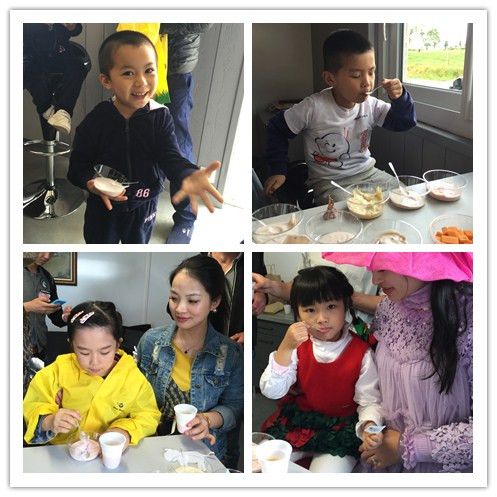 合生元宝宝们品尝牧场主为大家准备的新鲜奶酪
