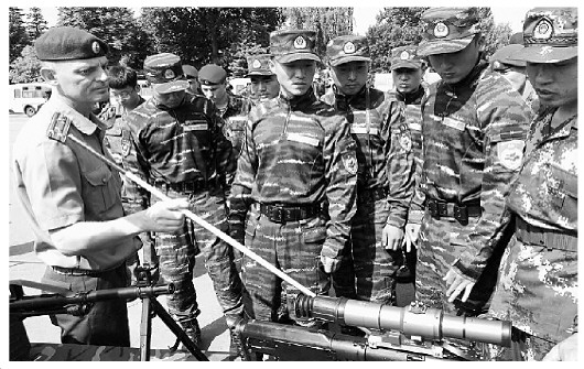 中方参训队员参观俄方反恐装备展示。 齐明宇摄