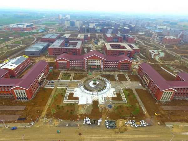 安徽理工大学新校区西门前的广场和建筑。 安徽理工大学新闻网 图