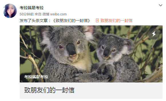 我对自己年轻单纯、涉世未深、偏执盲目铸成的大错感到追悔莫及,并真心悔悟,我愿为我的过错承担责任,今后我将告别旧我,不负韶华,给大家展现一个全新的考拉。![]()