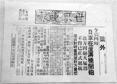 作为发行量数一数二的北平大报,《世界日报》及其附属的《世界晚报》在沦陷这出悲喜剧中,既是造梦的工具,又见证了梦醒那一个瞬间。7月28日各报馆均传出克复丰台、逼近通县、廊房告捷的消息,北平市民沉浸在胜利的狂喜中,王向辰《故都暂别记》追述,他当日下午抢买《世界晚报》一张,“且行且读,有一标题曰:‘北平宛如铜城’。乃至得意处则高声朗诵,随阅我报之市民,亦报以同情之微笑”。7月29日出版的半张《世界日报》,在邓云乡关于北平沦陷的记忆中占据相当重要的位置:
