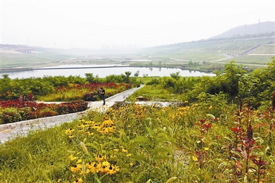 昨日,在刚刚完全具备分洪蓄洪条件的西郊砂石坑蓄洪工程处,北青报记者看到,总高程近60米的四层环湖步道“簇拥”着一汪湖水,四周绿植葱葱、野花成趣。“实际上,这里原来就是个巨大的砂石坑。如今,正利用此对雨水进行蓄滞。如遇大雨,永引渠内洪水将由节制闸拦截,不让其入城,而转向砂石坑,先行就地存蓄起来。之后,再用于回补地下水。”温明霞解释道。