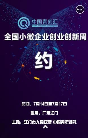 “中国青创汇”全国小微企业创业创新周将于7月14日在广东江门拉开帷幕。