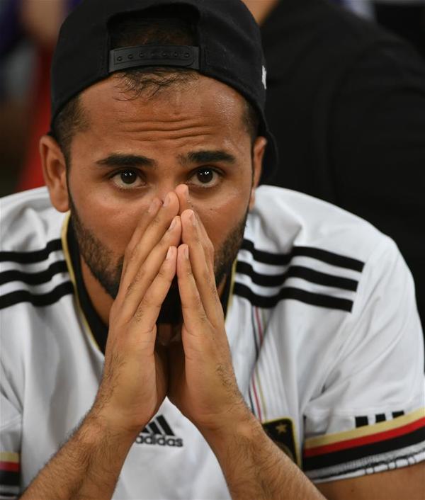7月7日,一名德国球迷在赛后神情低落。当日,在法国马赛进行的2016年欧洲足球锦标赛半决赛中,法国队以2比0战胜德国队,晋级决赛。 新华社记者郭勇摄
