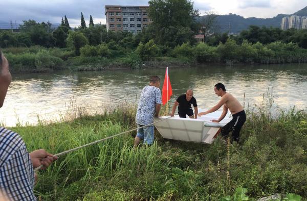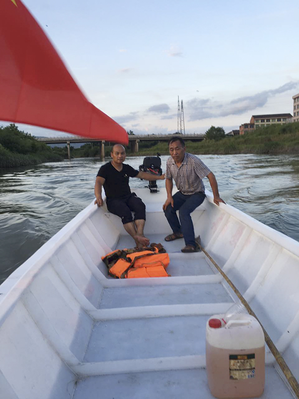 2005年,叶青杭加入镇防汛抗台抢险应急小分队,带领其中的木船队奋战在抗洪抢险第一线。他告诉澎湃新闻(www.thepaper.cn),木船船身加上马达等设备近900公斤,太笨重,在水位浅的地方行进不方便。2015年的一次台风期间,水头镇再次被淹,他大哥叶青艇撑船去救人,因为天色较暗,木船来不及躲避,撞到电线杆受了伤,这让他下了造新船的决心。