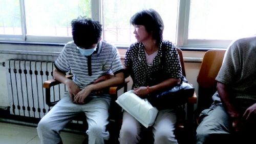 记者见到王秀芬一家人是在南山路派出所的一间办公室, 小伙子刚出院还戴着口罩,坐在一张椅子上微微低着头,母亲王秀芬挽着儿子的胳膊紧挨着儿子, 不停地抚摸着儿子的胳膊, 生怕儿子离开她一步。
