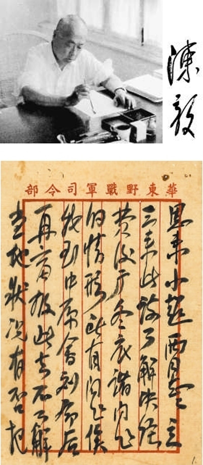 陈毅写给周恩来、邓颖超的书信(局部)。