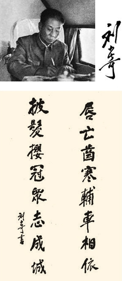 刘少奇1951年5月为抗美援朝书画义卖展览会题词:唇亡齿寒辅车相依,披发撄冠众志成城。