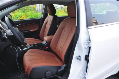 进一步观察,发现MG GT名爵锐行延续了极简布置的物理按键,可实现半臂范围内的无视化操作。同时,2016款MG GT名爵锐行采用了黑色与棕色相拼的内饰风格。相比之下我个人更喜欢被称作弗莱明棕的车厢配色,和强调运动感的全黑内饰比起来,双色内饰看起来更洋气也更显档次。从细节做工与质感来说,锐行保持了现款车型的水准,在同价位车中算是平均水平。
